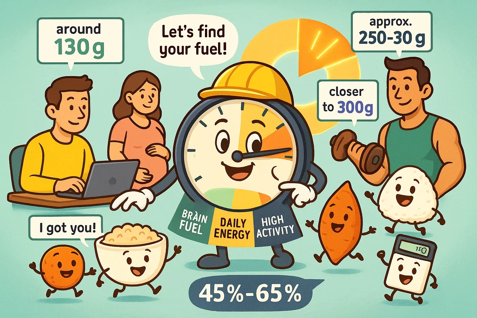 Still, there are some general, evidence-based guidelines. According to the Dietary Guidelines for Americans, most people should get 45% to 65% of their total daily calories from carbohydrates. That means: